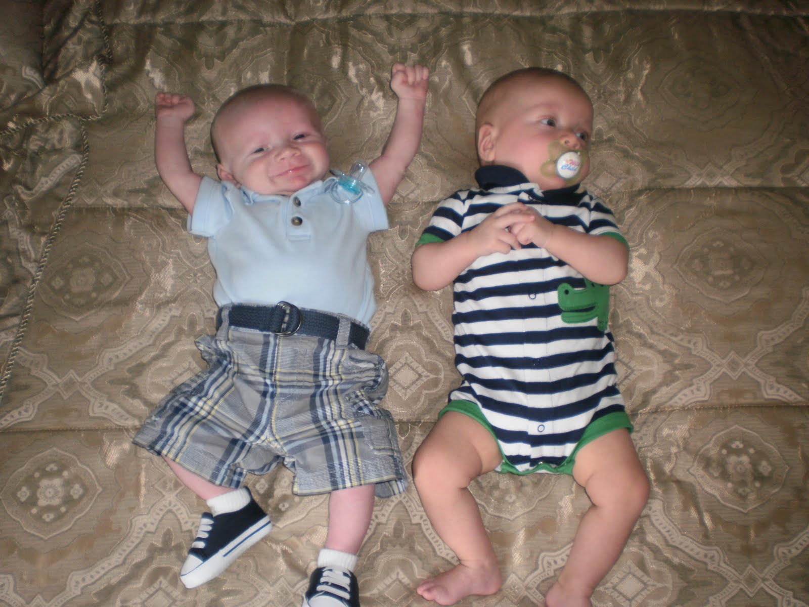 Colton has really been developing his personality these past few weeks. He loves to smile and talk, but of course won't flash one for the camera very often! I decided not to go back to work for the last 2 weeks of the school year, so I will get to stay home until the end of August! Who knows, maybe we will win the lottery and I can stay home permanetly.... a girl can dream, can't she?
